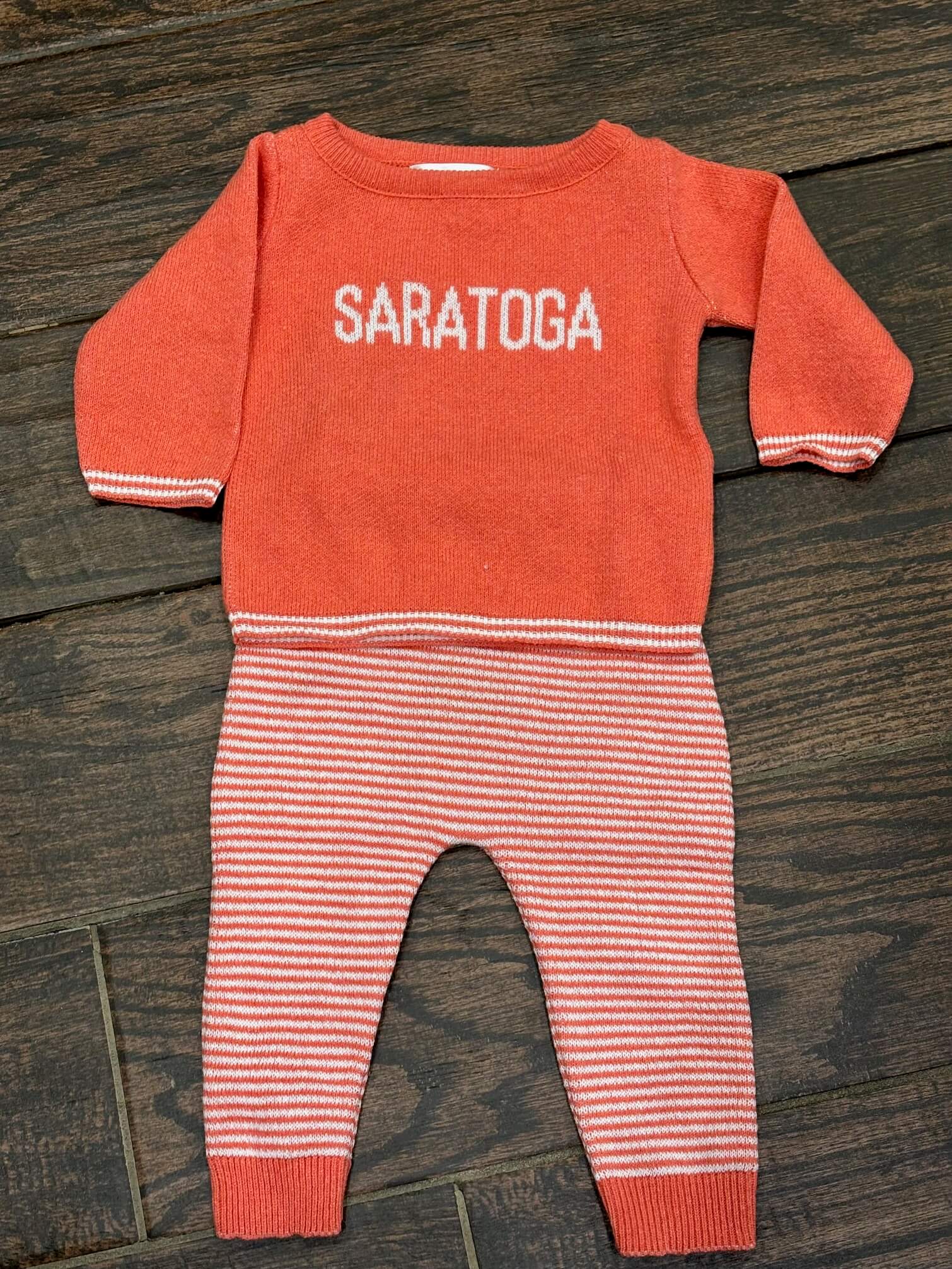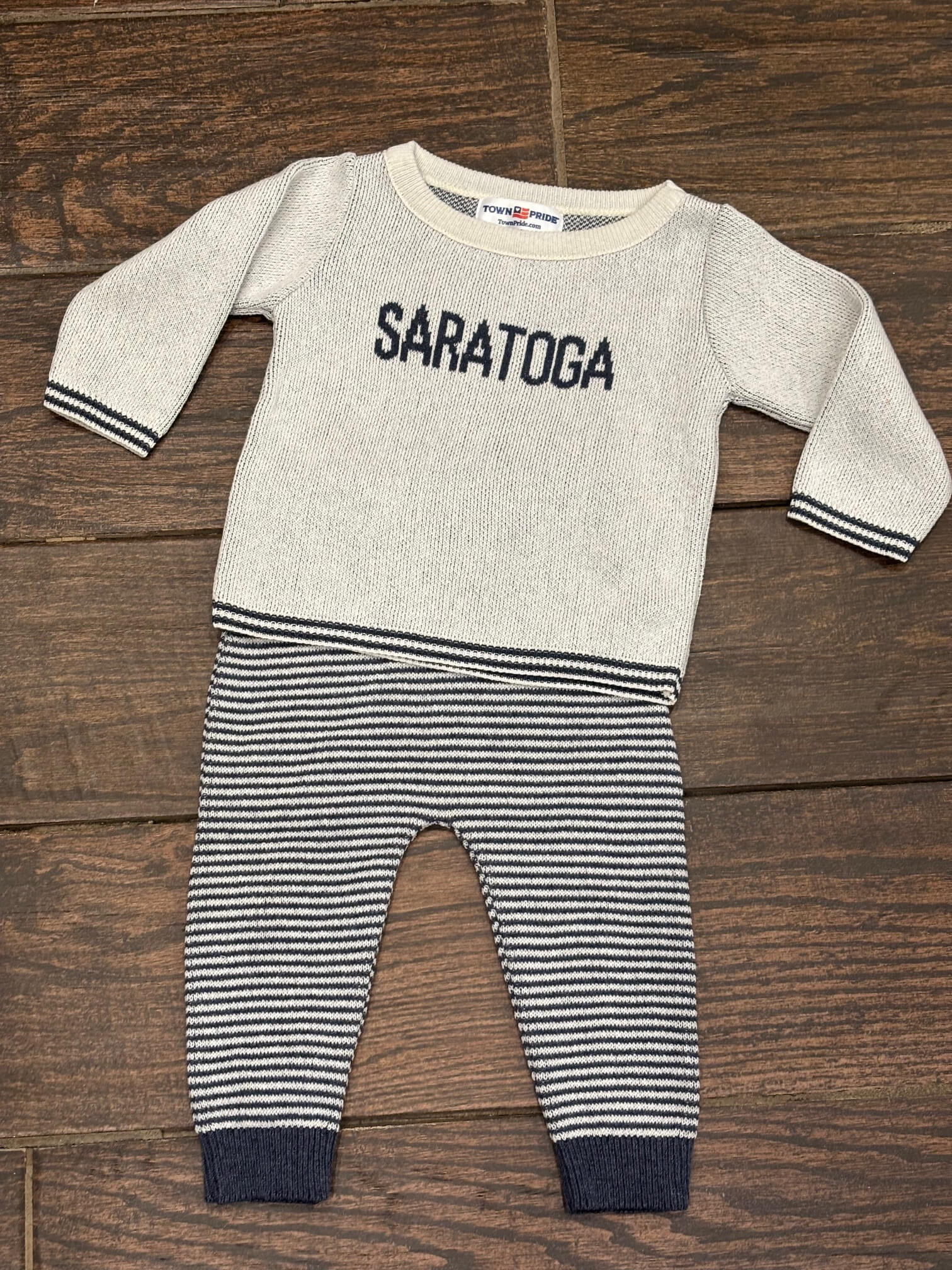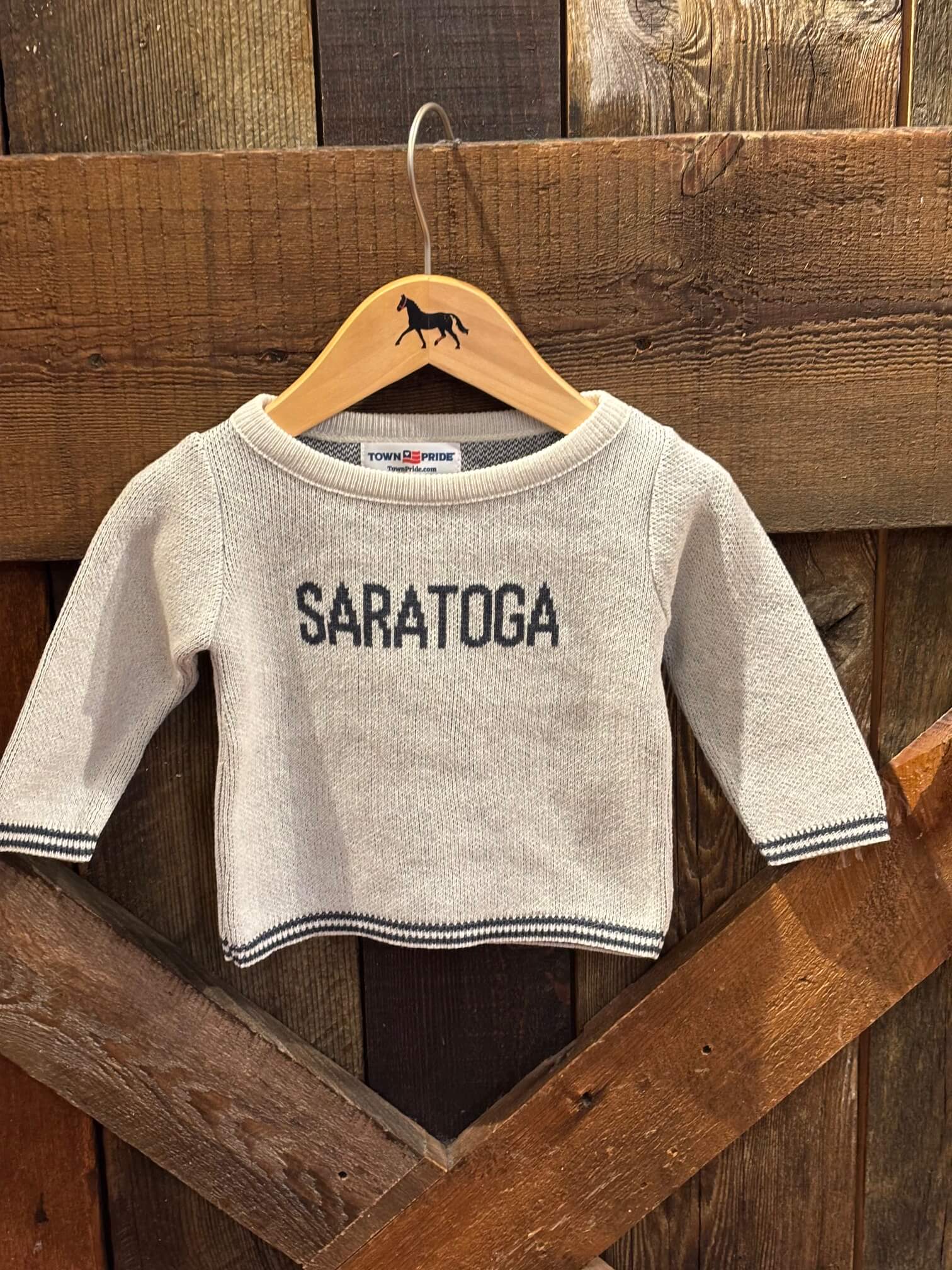 These adorable sweaters pair perfectly with our Knit Baby Mini Stripped Pants. On the back of the sweater there is a silhouette of a horse. Perfect for your little horse lover.